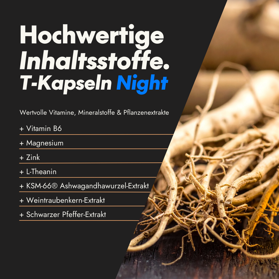 ✔ Active Men T-Kapseln Night enthält L-Theanin, KSM-66 Ashwagandha Extrakt, Weintraubenkern Extrakt & Schwarzer Pfeffer Extrakt