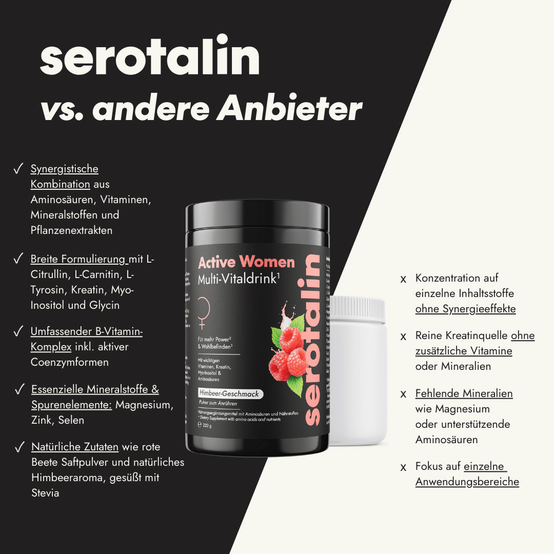 Serotalin Active Women Multi-Vitaldrink¹ – Dein täglicher Begleiter für Energie¹, Balance² & Fokus⁵