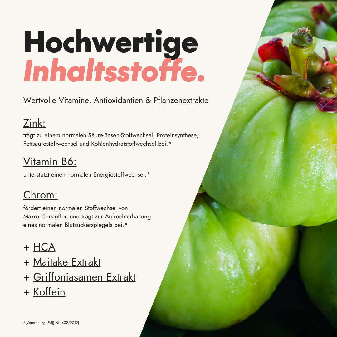 ✔ With hydroxycitric acid (HCA) from Garcinia Cambogia
