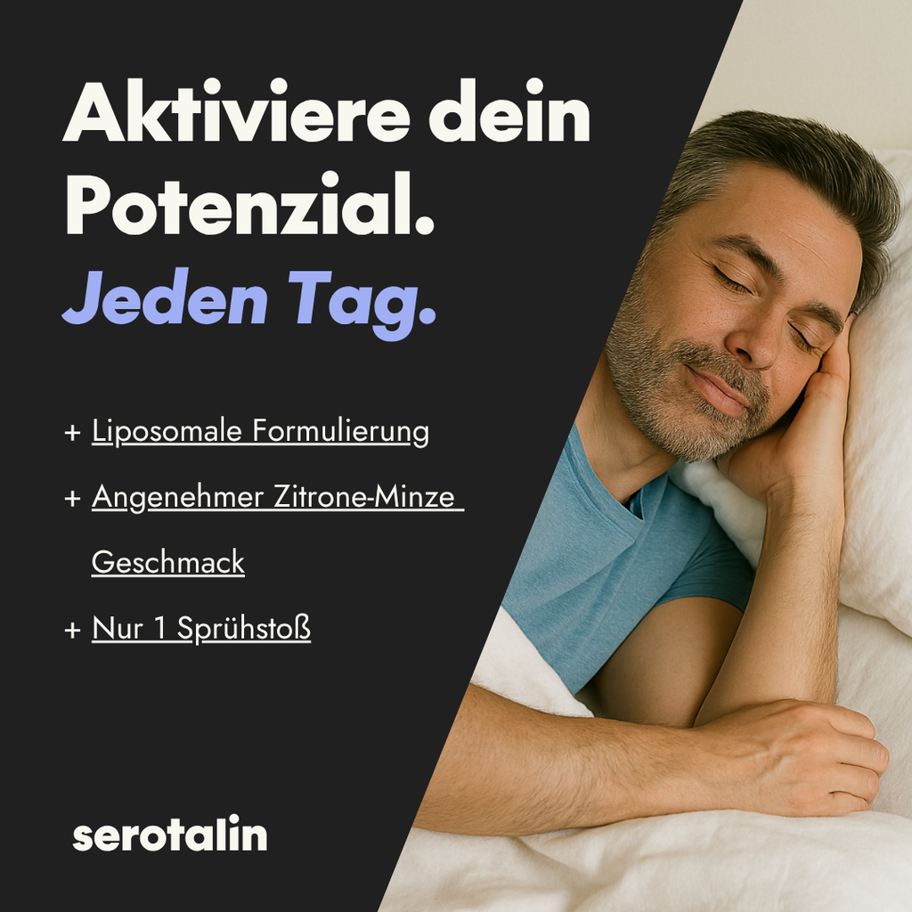 Actually, the night with its darkness is a phase of relaxation. We associate rest and gathering new strength with sleep. But that's not the case for everyone. Sleepless nights, constantly tossing and turning in bed, checking the time again and again - and only getting angry at yourself. Why don't you just sleep? Do you recognize such moments? While your partner falls into bed in the evening and already after five minutes lets out a dreamy sigh, you are still lying awake and sleep is out of the question. Sleep is an important building block for your physical and mental health. In the case of persistent sleep problems, reduced performance, emotional stress and feelings of being overwhelmed are frequent consequences. That's why you shouldn't let it get that far in the first place. The serotalin® MELATONIN SPRAY is your rescue for the night.