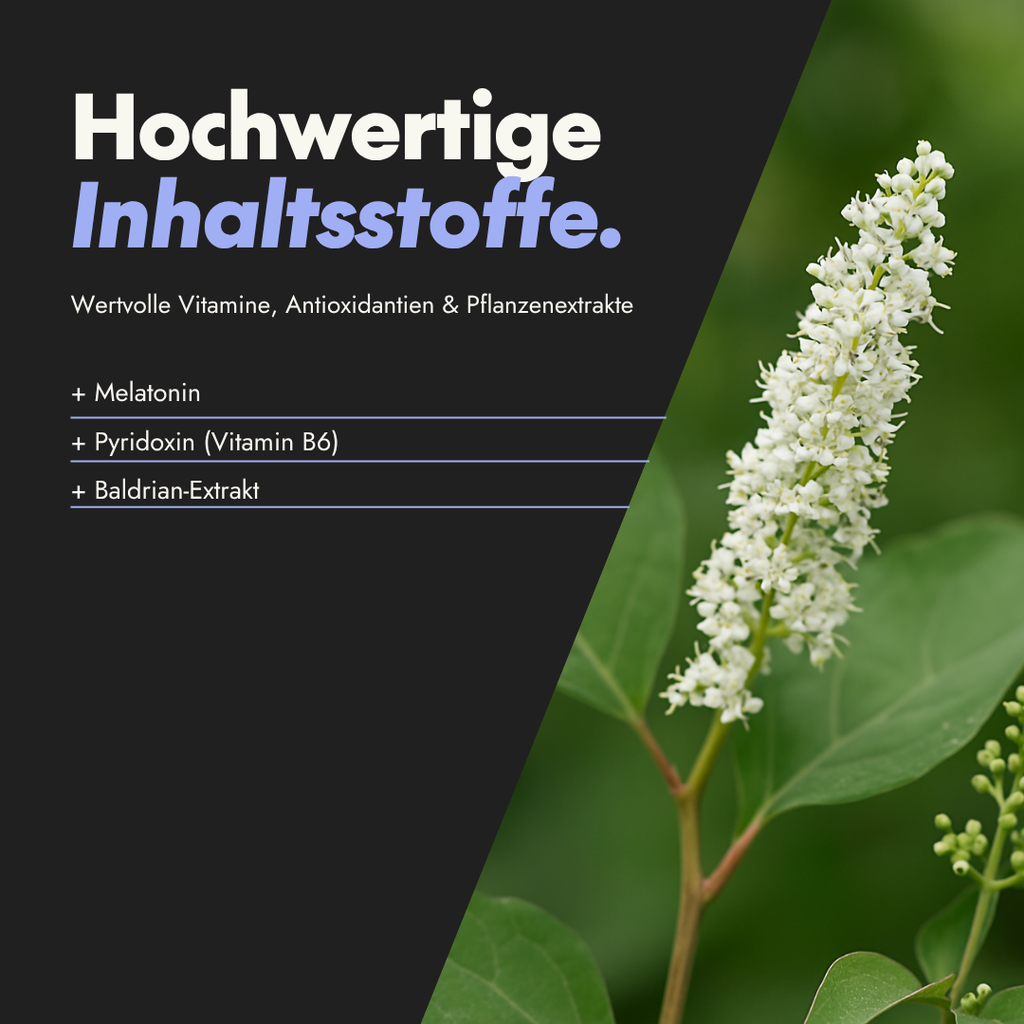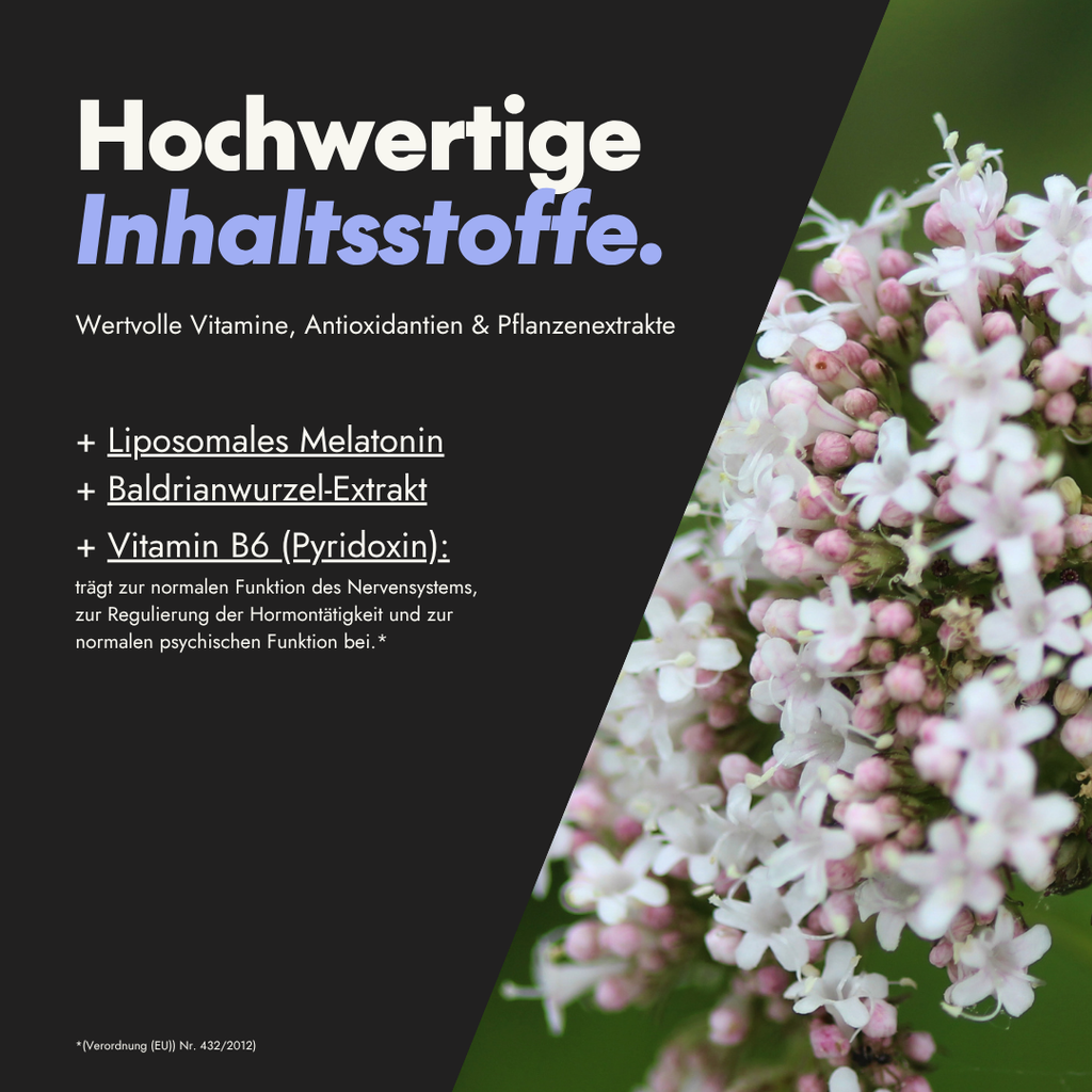 ✔ Effective combination of liposomal melatonin, valerian and vitamin B6